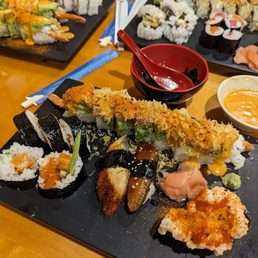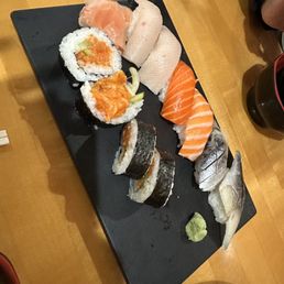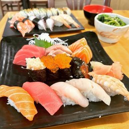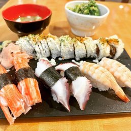 This is my go to sushi spot if I'm ever craving for some cheap decent sushi. Very affordable and very good for the price . Hokkaido always hit the spot! And it won't damage your pocket either . I got the dragon roll which is one of my favorite roll. It is a must get , I has eel , avocado , and softsheft crab. I always get the salmon nigiri , spicy chop scallops , and yellow tail those are my go to sushi to get . If you like something a nice kick to and something oily I recommend to try the saba which is there mackerel. The service is always fast and quick . Great time to go is around 5-7 to avoid the dinner crowded. You never have to worried about parking because their parking lot is huge! They also have free complimentary miso soup and red bean soup ! I highly recommend this spot to anyone who like sushi and is on a budget !